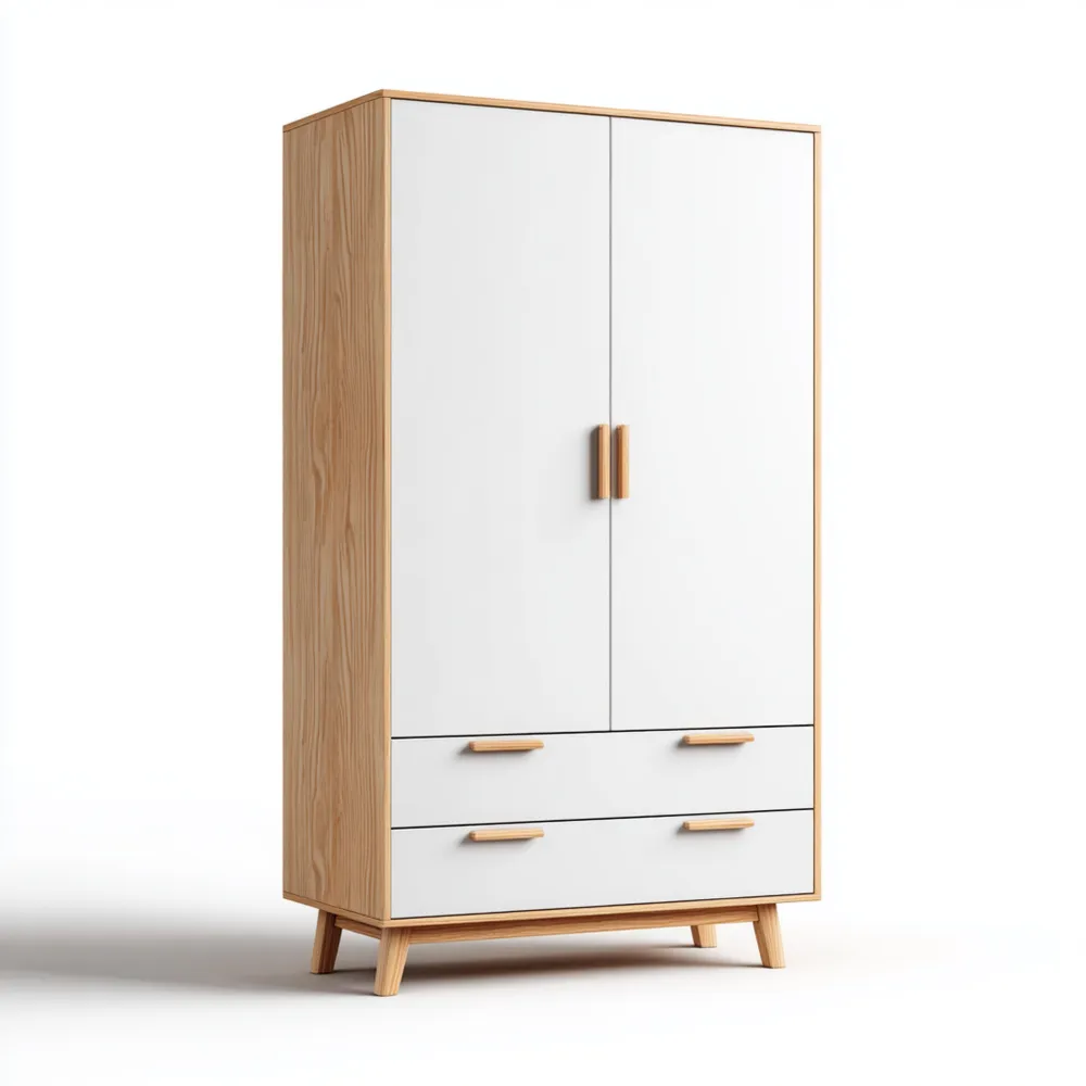 2ドアのデザインには、たっぷりとした収納スペースが備わっており、衣類や雑貨を整理するのに最適です。